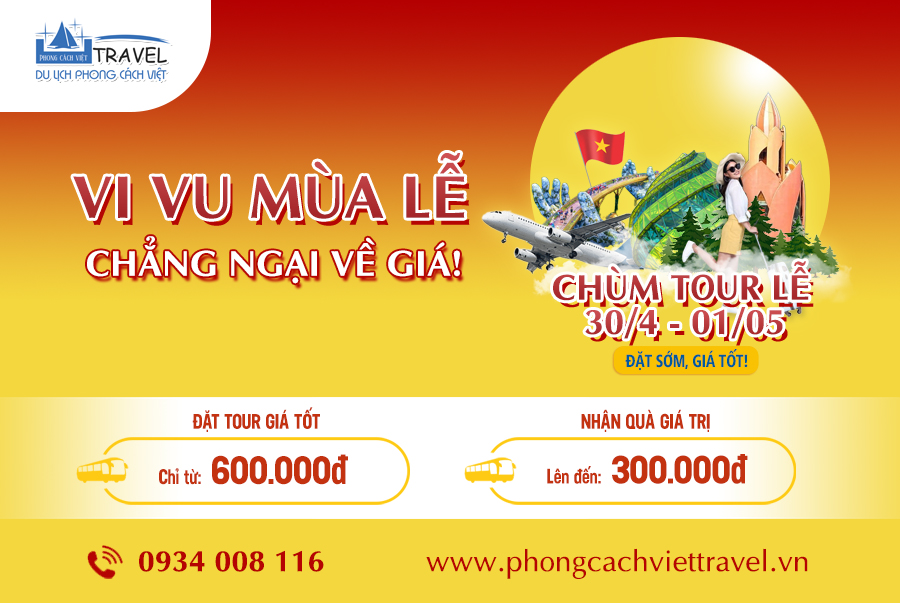 Chào mừng Ngày Giải phóng miền Nam thống nhất đất nước 30/4 và Quốc tế Lao động 1/5, Phong Cách Việt Travel mở bán chùm tour du lịch trong và ngoài nước với mức giá siêu ưu đãi chỉ từ 600,000đ cùng chương trình khuyến mại sốc và nhiều quà tặng hấp dẫn.