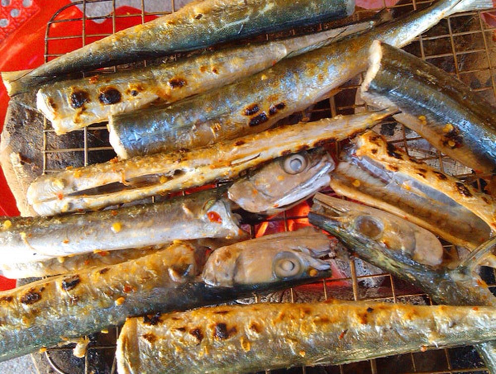 2. Cá Xương Xanh Nướng – Là một loài cá biển, thân tròn và dài. Thịt cá có vị ngọt còn dai dai, cuốn với bánh tráng ăn kèm với rau rừng ăn như lá cách, lá lớp, …