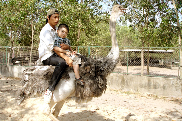 Hoạt động cưỡi đà điểu độc đáo tại khu du lịch Vinh Sang