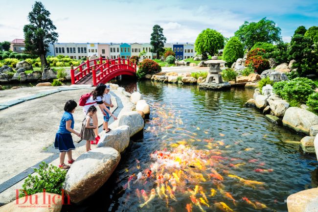 Cá Koi tung tăng bơi lội trong vườn Bonsai Mỹ Quỳnh