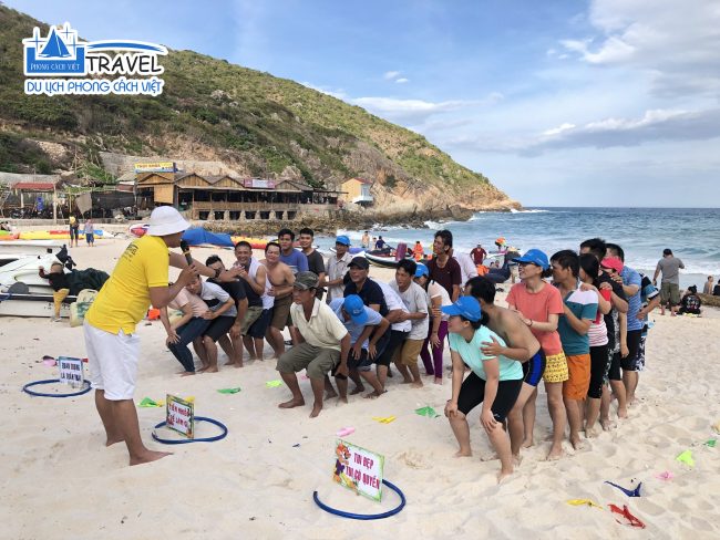 14h00: HDV đưa Quý khách ra bến tàu để khởi hành đi tham quan tắm biển lặn ngắm san hô – thưởng thức rượu vang, trái cây tại bãi Nhà Cũ hoặc Hòn Rùa. Tại đây quý khách vừa được tắm biển thưởng thức trái cây vừa nhâm nhi ly rượu vang thả mình vào làn nước trong xanh cảu biển đảo – tham gia các trò chơi tại bãi biển (chi phí tự túc). Không những vậy, Tại đây Quý khách còn được chụp hình thoải thích, lưu lại những kí niệm trong chuyến đi đầy ý nghĩa.