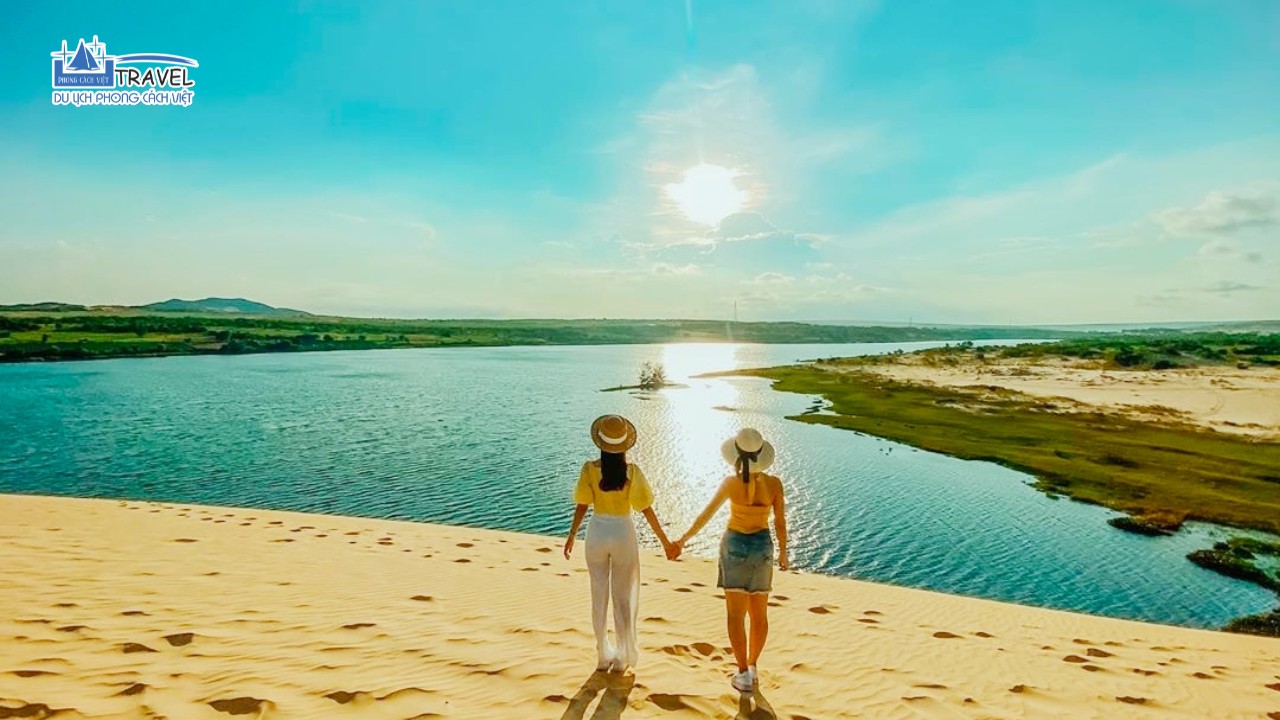 Đoàn khởi hành đi tham quan Bàu Trắng . Được mệnh danh là tiểu sa mạc Sahara của Bình Thuận . Bàu Trắng Mũi Né – một địa điểm mang trong mình một vẻ đẹp hoang sơ, yên bình như một bức tranh thủy mặc.