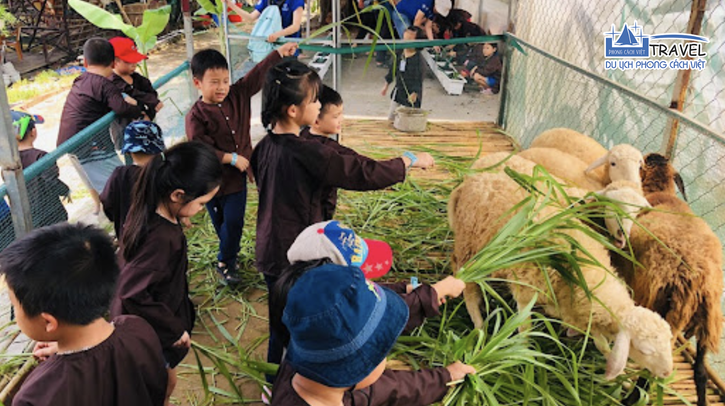 – Tham quan khu động vật:Rời vườn rau chúng ta sẽ đến với khu nuôi động vật để ngắm nhìn những chú cừu, chú thỏ xinh xắn, trực tiếp cho chúng ăn và cùng chụp hình, vui đùa cùng các con vật.