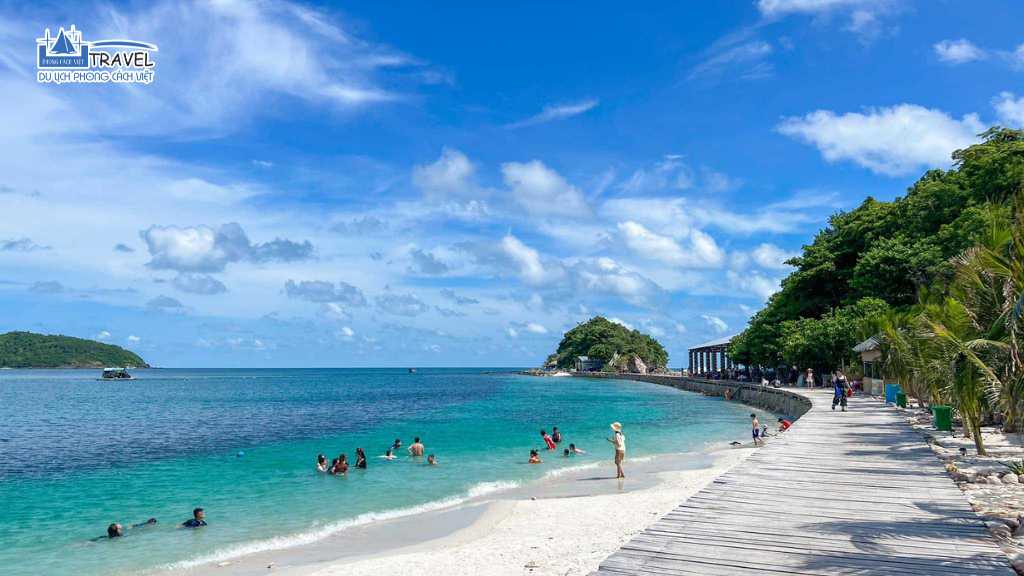 - Tới Bãi Mến – Bãi biển đẹp nhất tại Đảo Nam Du với cát trắng, hàng dừa thơ mộng tuyệt đẹp. Đoàn tự do tắm biển chụp hình, chơi chò chơi tập thể vui nhộn