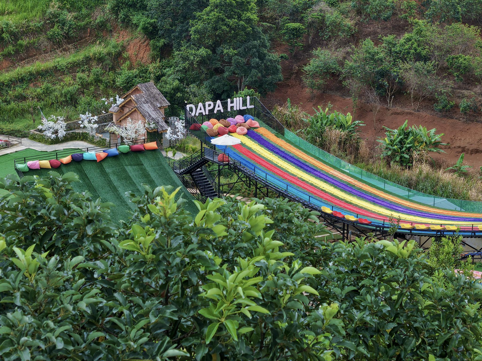 Dapa Hill Đà Lạt được lấy cảm hứng từ vùng Tây Bắc với những tòa nhà gỗ mộc mạc. Khu nhà gỗ được bao quanh bởi những hàng cây hoa ban trắng và khu đồi thông xanh tươi tạo nên bầu không khí mát mẻ. Đến đây, bạn có thể dạo quanh không gian Tây Bắc giữa lòng thành phố ngàn hoa, chụp ảnh và tận hưởng không khí trong lành.