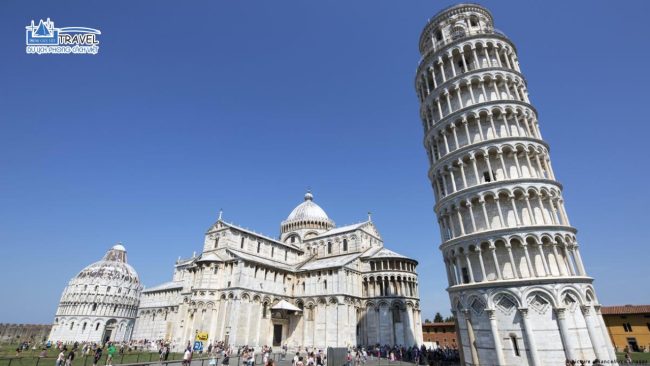 – Tháp nghiêng Pisa – Tháp được gia cố bằng 800 tấn chì đối trọng để giảm độ nghiêng. Đoàn chụp ảnh lưu niệm xung quanh tháp.