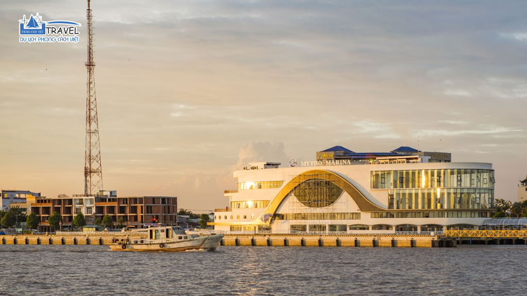 Tiếp theo du khách đến với Cảng Du Thuyền Mỹ Tho lên tàu đi du lịch sông Tiền, ngắm cảnh bốn cù lao Long, Lân, Qui, Phụng. Thuyền chạy dọc theo bè cá nổi để du khách tìm hiểu cách nuôi cá trên sông của người dân địa phương và ngắm nhìn cầu Rạch Miễu.
