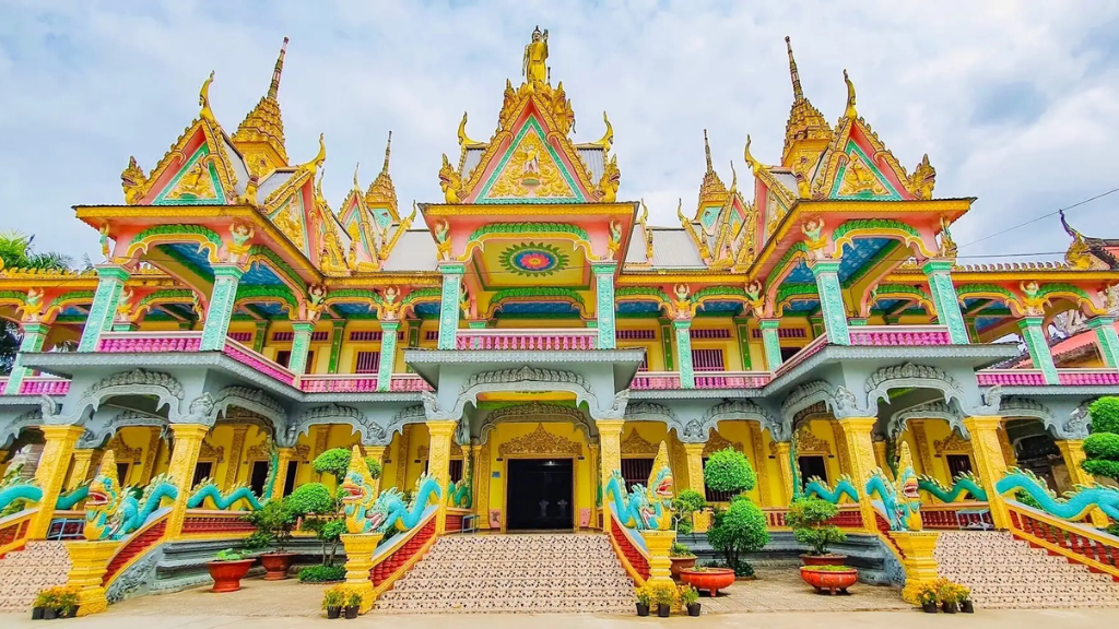 Đến Sóc Trăng quý khách tham quan ngôi chùa SomRong – Chùa tượng Phật nằm lớn nhất Việt Nam mang kiến trúc nổi tiếng của người Khmer.