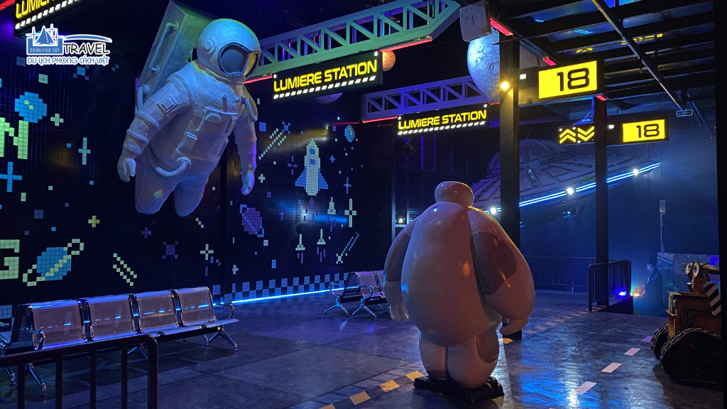 Nơi này được xây dựng với một bản sao chân thực của một trạm vũ trụ, với các mô hình về phi hành gia, dải ngân hà và các vì sao lung linh. Đặc biệt, Khu Vũ Trụ còn có một Ngôi Đền ảo diệu với các góc chụp độc đáo và đầy sáng tạo. Sự kết hợp của công nghệ 3D mapping và ánh sáng UV mang đến cho du khách những trải nghiệm đầy hứng thú và hấp dẫn.